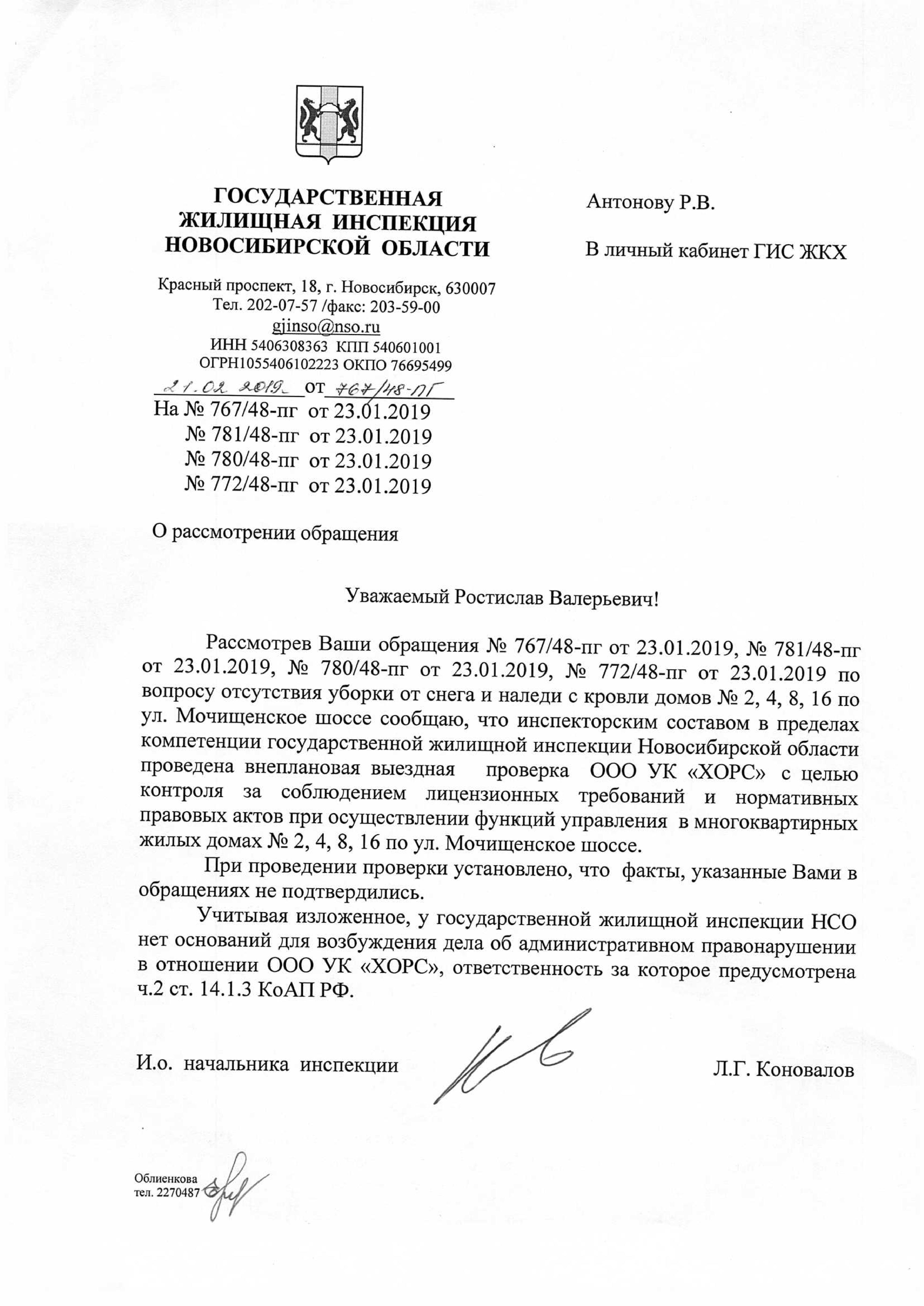 Номер жалобы:48478 Тип жалобы:Иные проблемы ЖКХ Название объекта: Регион:Новосибирская область Город:Новосибирск Адрес:Мочищенское шоссе, 4 Описание жалобы:УК