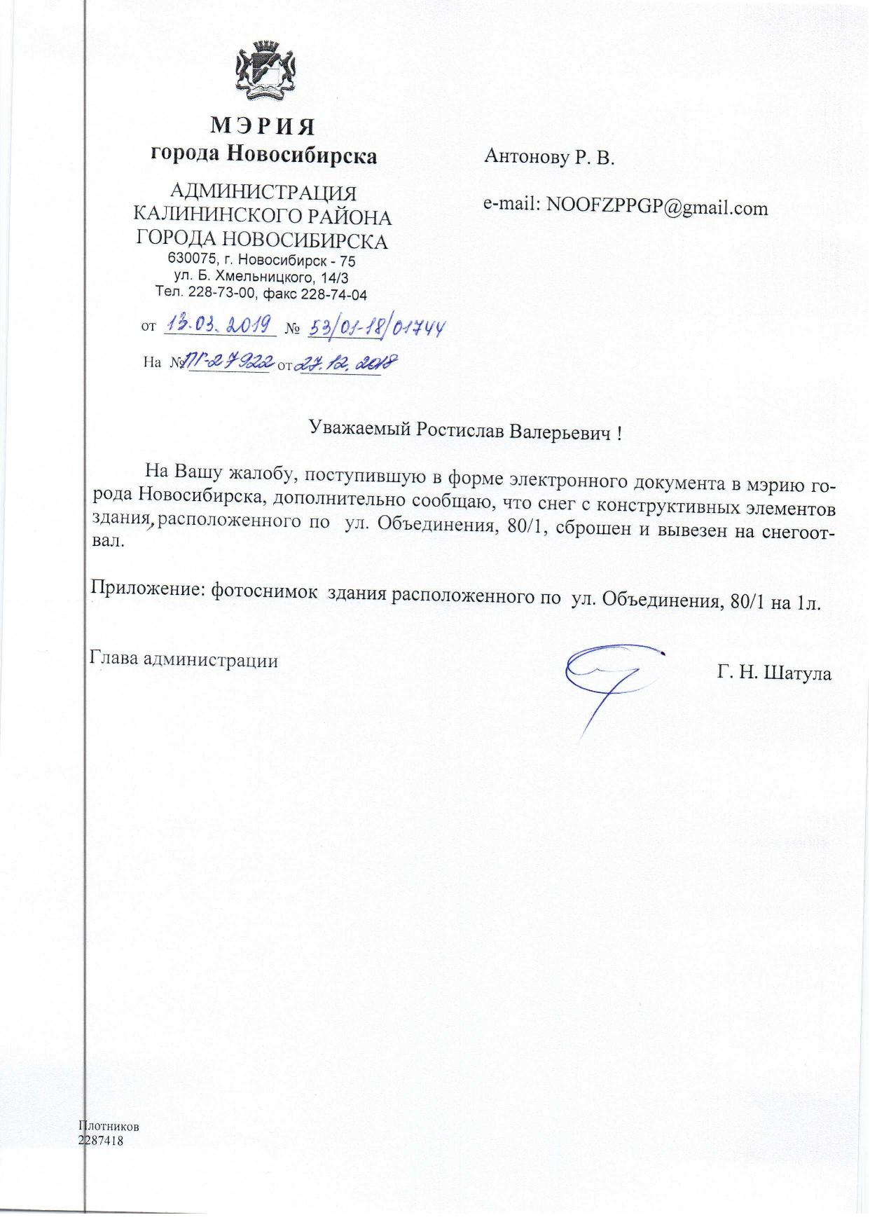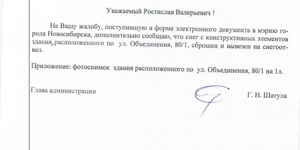 Номер жалобы:47789 Тип жалобы:Иные проблемы ЖКХ Название объекта: Регион:Новосибирская область Город:Новосибирск Адрес:ул Объединения, 80/1 Описание жалобы:Снег на крыше дома Статус: