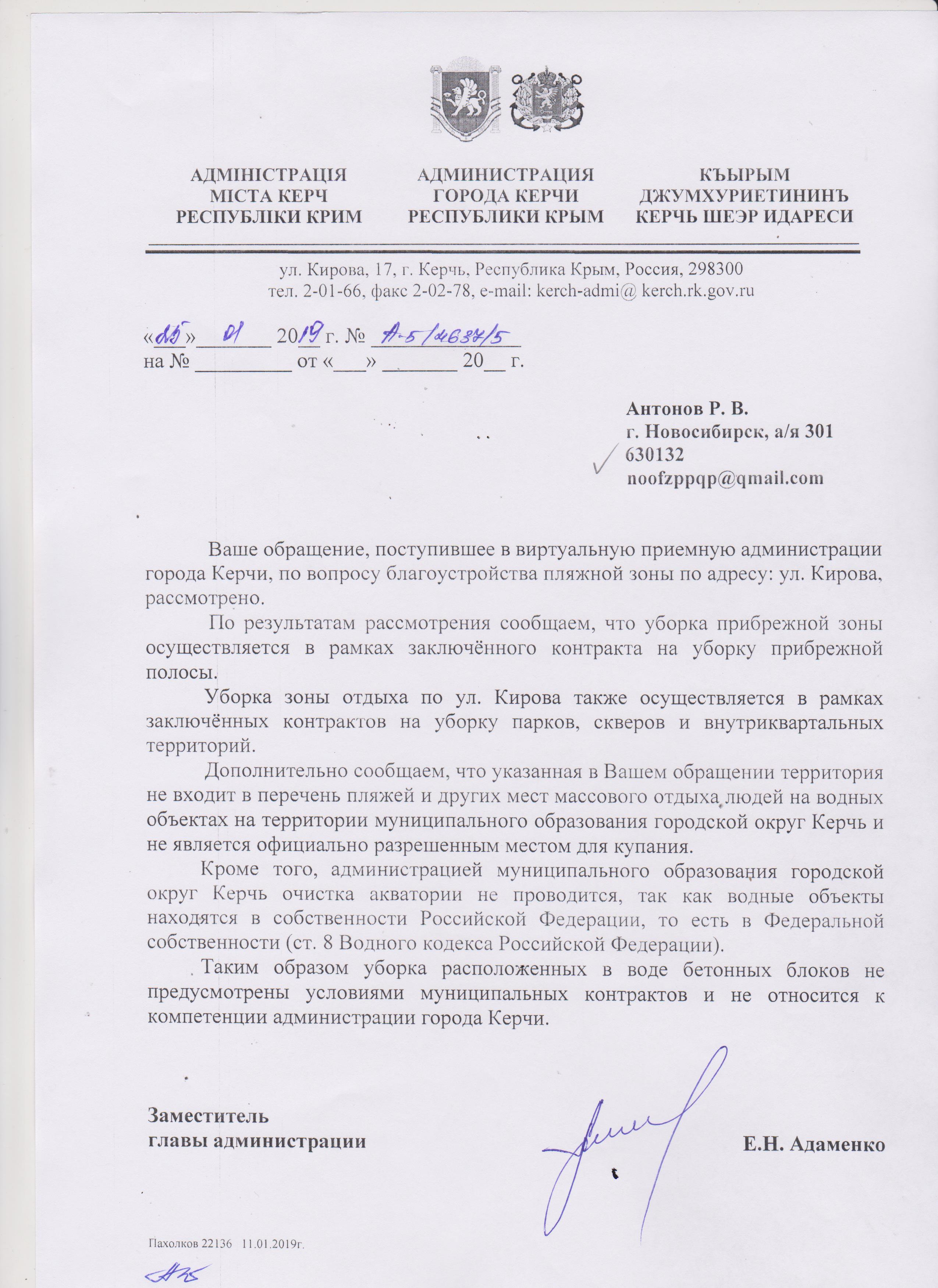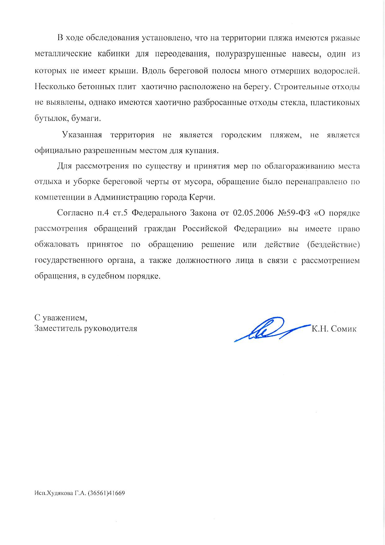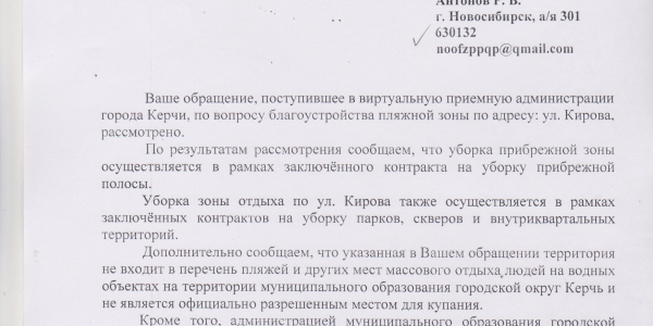 Номер жалобы:47458 Тип жалобы:Иные проблемы ЖКХ Название объекта: Регион:Республика Крым Город:Керчь Адрес:улица Кирова Описание жалобы:На городском пляже раскидан строительный мусор- бетонные блоки по кромке воды, прошу расчистить берег и акваторию пляжа, ржавчина уничтожила все мет. Конструкции на пляже, прошу заменить переодевалки, навесы, завести песок, увеличить территорию песчаного пляжа, провести уборку от водорослей, уборку проводить регулярно, вне зависимости от сезона.