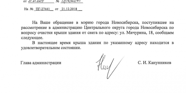 Номер жалобы:47337 Тип жалобы:Иные проблемы ЖКХ Название объекта: Регион:Новосибирская область Город:Новосибирск Адрес:Новосибирск, улица Мичурина, 18 Описание жалобы:Снег на крыше дома Статус: