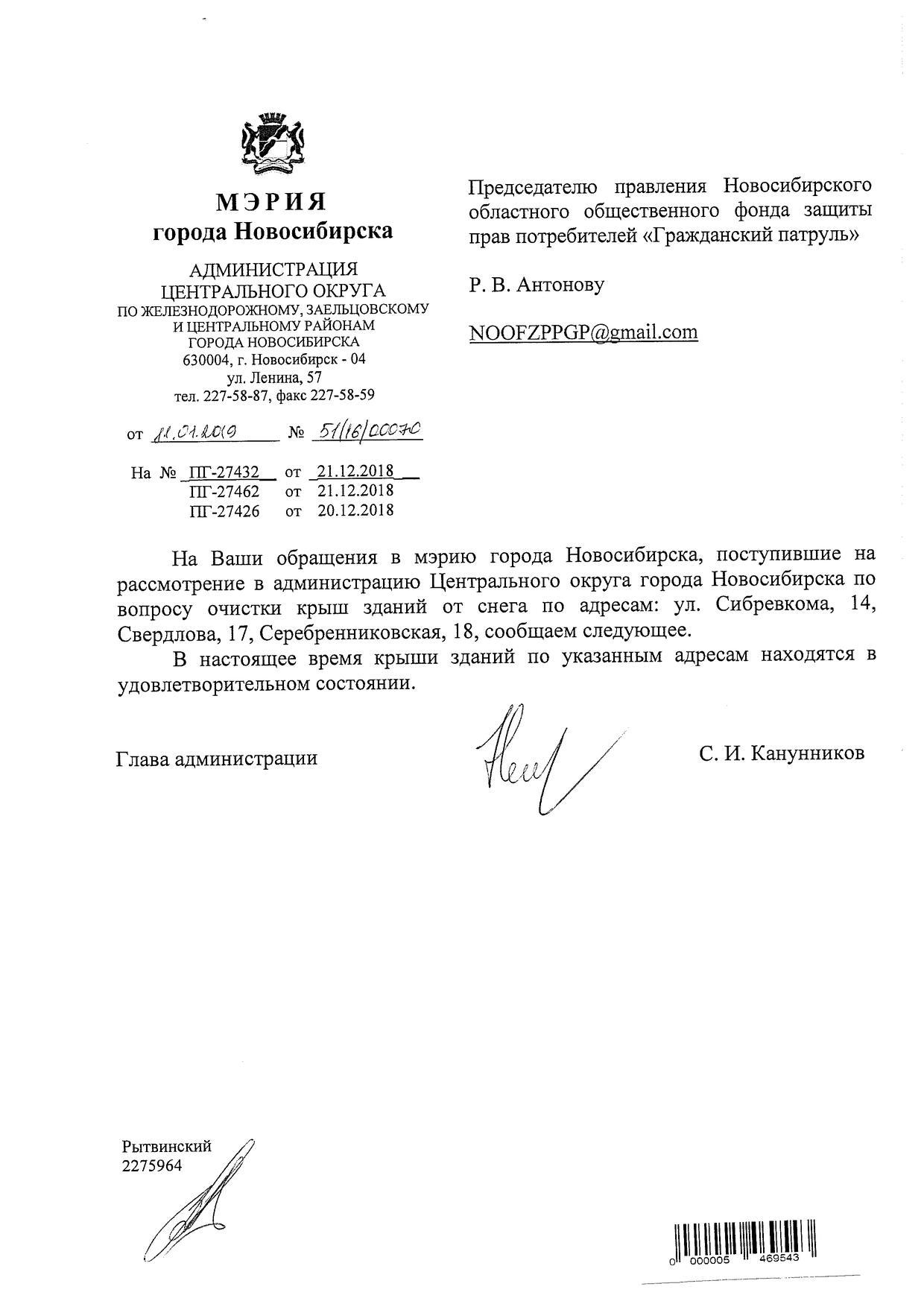 Номер жалобы:47259 Тип жалобы:Иные проблемы ЖКХ Название объекта: Регион:Новосибирская область Город:Новосибирск Адрес:Новосибирск, улица Сибревкома, 5 Описание жалобы:Сосульки на крыше дома Статус: