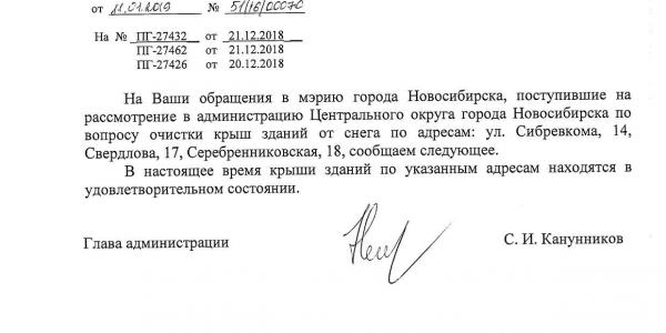 Номер жалобы:47264 Тип жалобы:Иные проблемы ЖКХ Название объекта: Регион:Новосибирская область Город:Новосибирск Адрес:ул Сибревкома, 6 Описание жалобы:Снег на крыше дома Статус:
