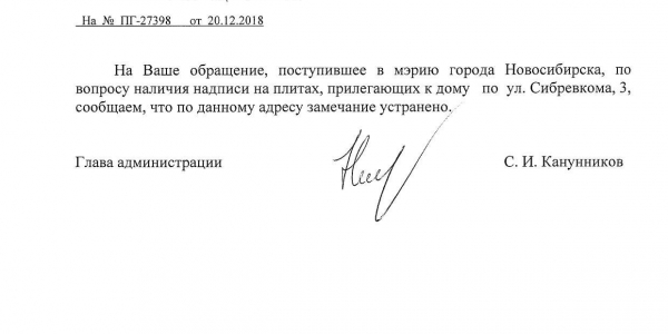 Номер жалобы:47262 Тип жалобы:Иные проблемы ЖКХ Название объекта: Регион:Новосибирская область Город:Новосибирск Адрес:Новосибирск, улица Сибревкома, 3 Описание жалобы:Надписи на плитах прилегающих к дому Статус:
