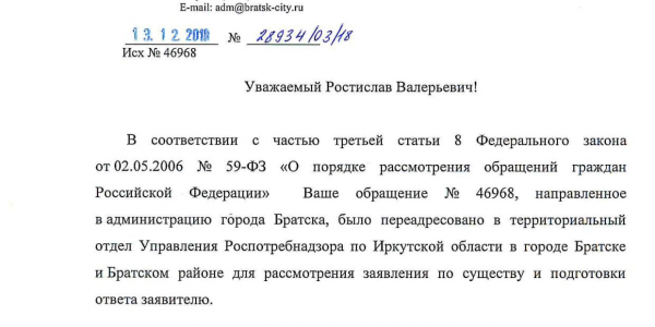Номер жалобы:46968 Тип жалобы:Иные проблемы ЖКХ Название объекта: Регион:Иркутская область Город:Братск Адрес:Братск, улица Муханова, 20 Описание жалобы:Надписи на фасаде здания роспотребнадзора Статус: