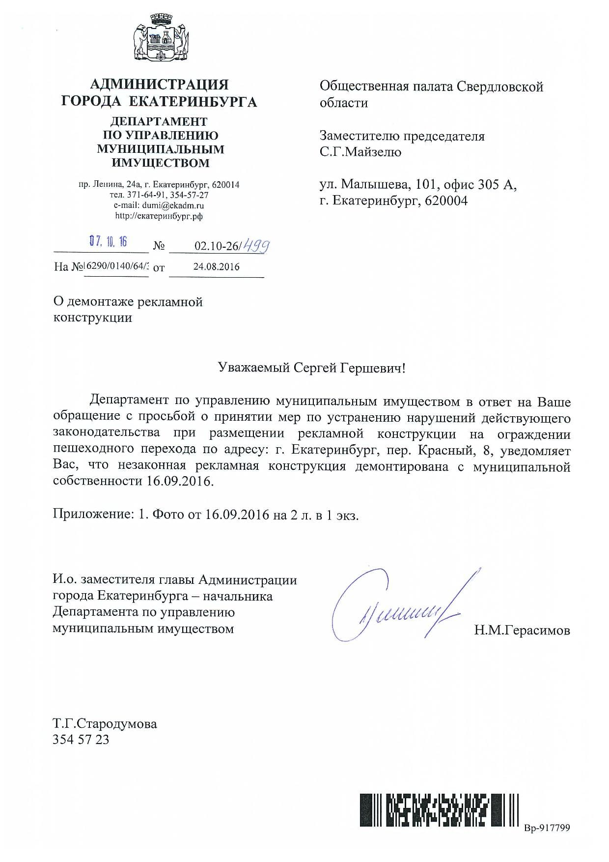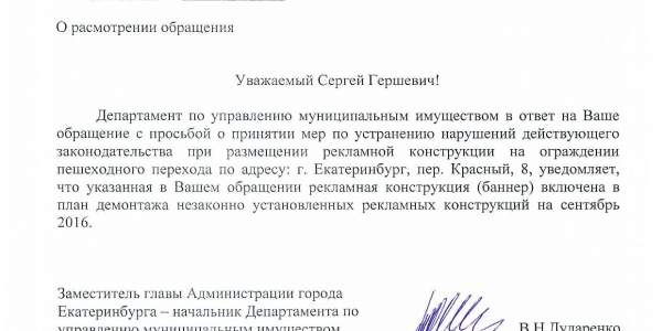 Номер жалобы:8179 Тип жалобы:Ненадлежащее содержание малых архитектурных форм Название объекта:Министерство По Управлению Государственым Имуществом Свердловской Области Регион:Свердловская область Город:Екатеринбург Адрес:Красный пер., 8 Описание жалобы:На ограждении пешеходного перехода незаконная реклама. Статус: