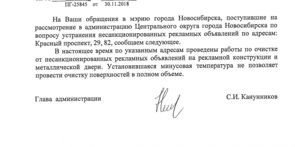 Номер жалобы:46614 Тип жалобы:Иные проблемы ЖКХ Название объекта: Регион:Новосибирская область Город:Новосибирск Адрес:Новосибирск, Красный проспект, 82 Описание жалобы:Объявления в неположенном месте Статус: