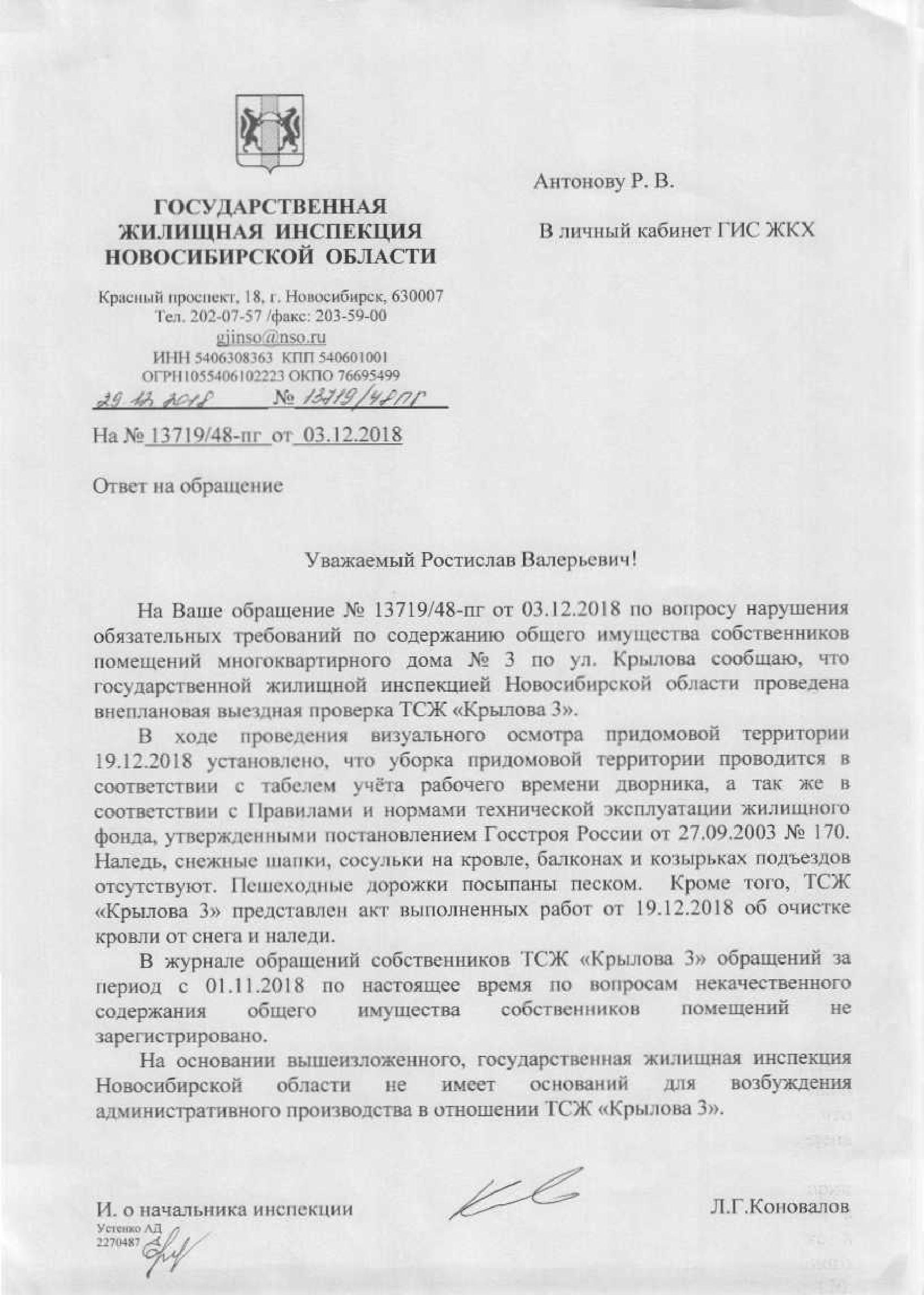 Номер жалобы:46600 Тип жалобы:Иные проблемы ЖКХ Название объекта: Регион:Новосибирская область Город:Новосибирск Адрес:Новосибирск, улица Крылова, 3 Описание жалобы:Сосульки на крыше дома Статус: