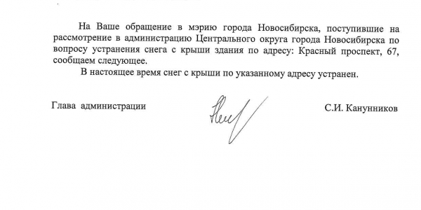Номер жалобы:46608 Тип жалобы:Иные проблемы ЖКХ Название объекта: Регион:Новосибирская область Город:Новосибирск Адрес:Новосибирск, Красный проспект, 65 Описание жалобы:46607/ Снег на крыше дома Статус: