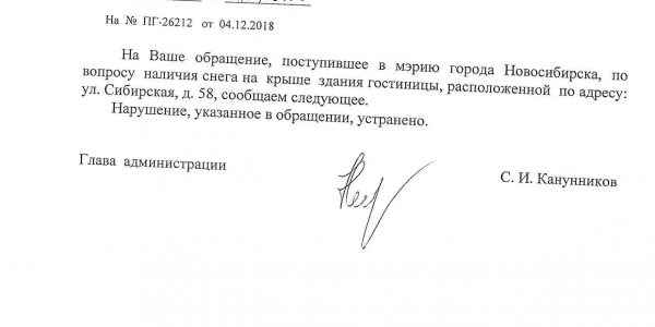 Номер жалобы:46571 Тип жалобы:Иные проблемы ЖКХ Название объекта: Регион:Новосибирская область Город:Новосибирск Адрес:Новосибирск, Сибирская улица, 58 Описание жалобы:Снег на крыше дома Статус: