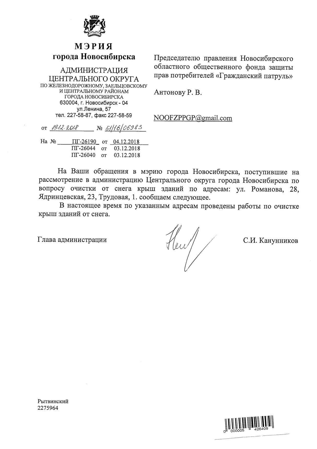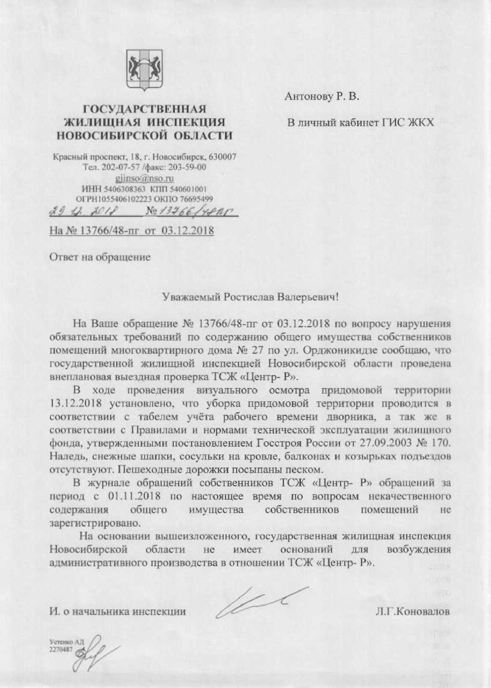 Номер жалобы:46498 Тип жалобы:Иные проблемы ЖКХ Название объекта: Регион:Новосибирская область Город:Новосибирск Адрес:Новосибирск, Красный проспект, 38 Описание жалобы:Сосульки на крыше дома Статус:
