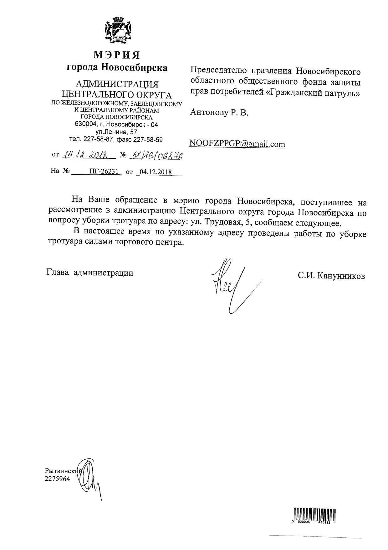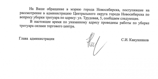 Номер жалобы:46502 Тип жалобы:Иные проблемы ЖКХ Название объекта: Регион:Новосибирская область Город:Новосибирск Адрес:Новосибирск, Трудовая улица, 5 Описание жалобы:Заснеженный тротуар во дворе дома Статус: