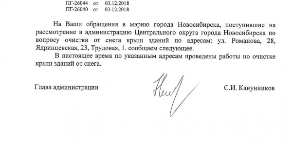 Номер жалобы:46508 Тип жалобы:Иные проблемы ЖКХ Название объекта: Регион:Новосибирская область Город:Новосибирск Адрес:Новосибирск, Трудовая улица, 1 Описание жалобы:Снег на козырьке дома Статус: