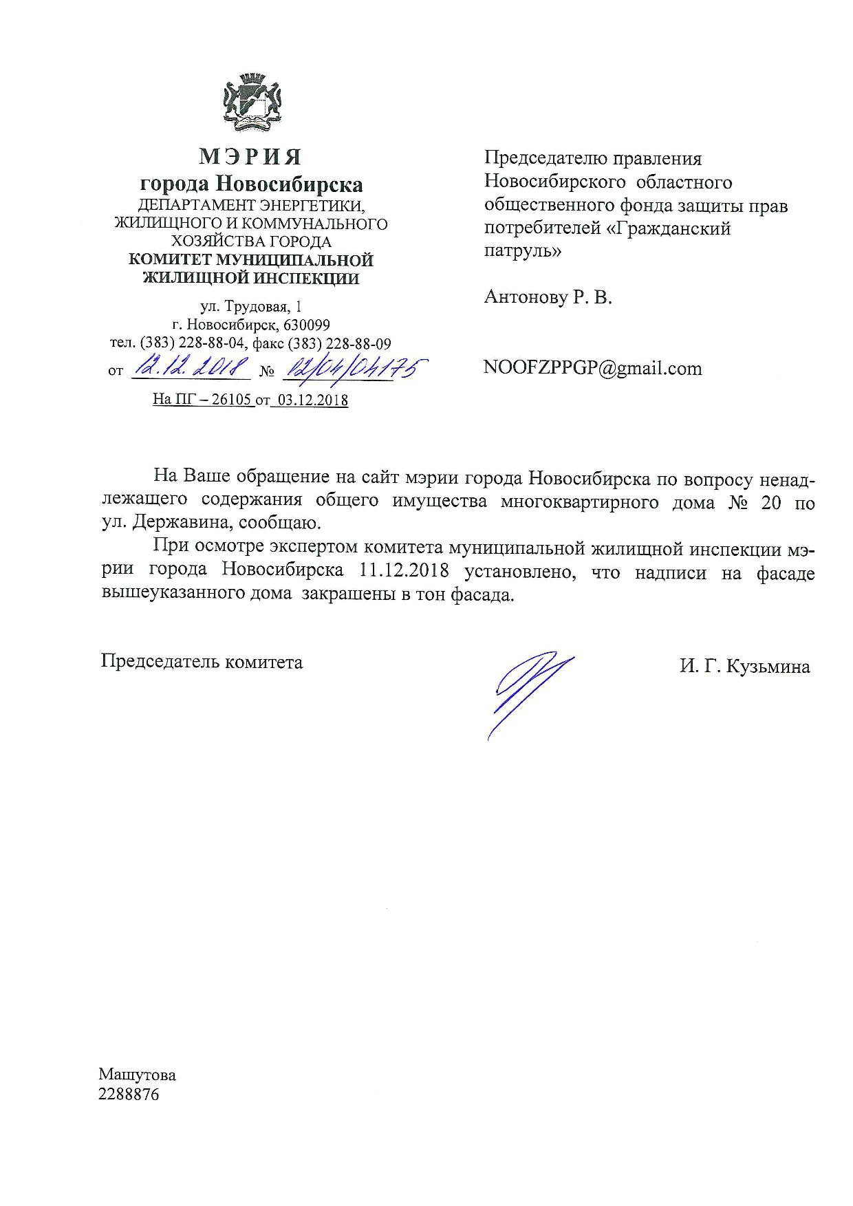 Номер жалобы:46482 Тип жалобы:Иные проблемы ЖКХ Название объекта: Регион:Новосибирская область Город:Новосибирск Адрес:Новосибирск, улица Державина, 20 Описание жалобы:Надписи на фасаде дома Статус: