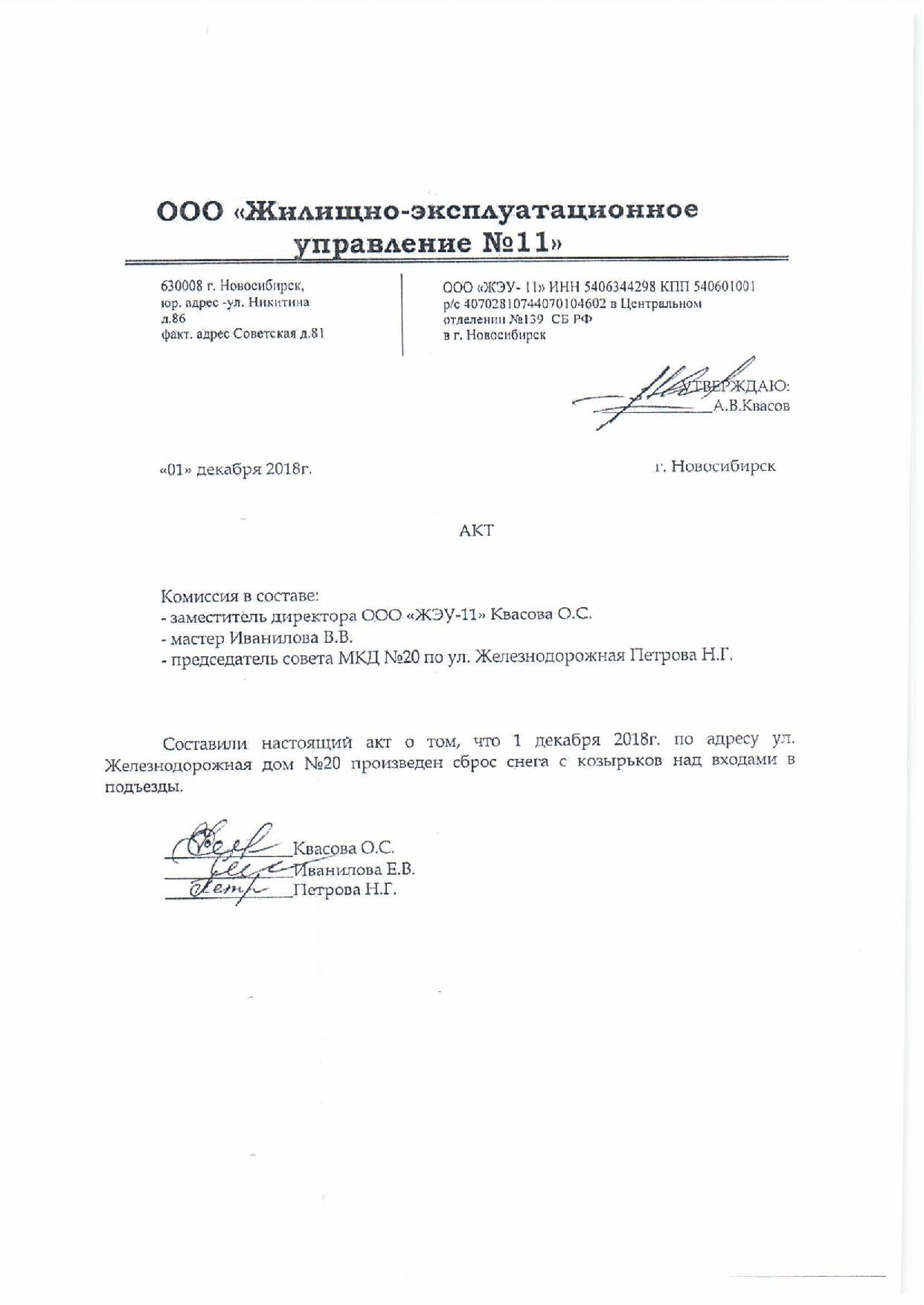 Номер жалобы:46321 Тип жалобы:Иные проблемы ЖКХ Название объекта: Регион:Новосибирская область Город:Новосибирск Адрес:Новосибирск, улица 1905 года, 85 Описание жалобы:Снег на козырьках подъезда Статус: