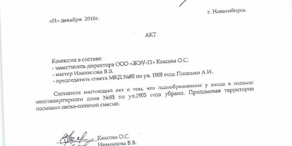 Номер жалобы:46322 Тип жалобы:Иные проблемы ЖКХ Название объекта: Регион:Новосибирская область Город:Новосибирск Адрес:Новосибирск, улица 1905 года, 85 Описание жалобы:Гололёд перед подъездом дома Статус: