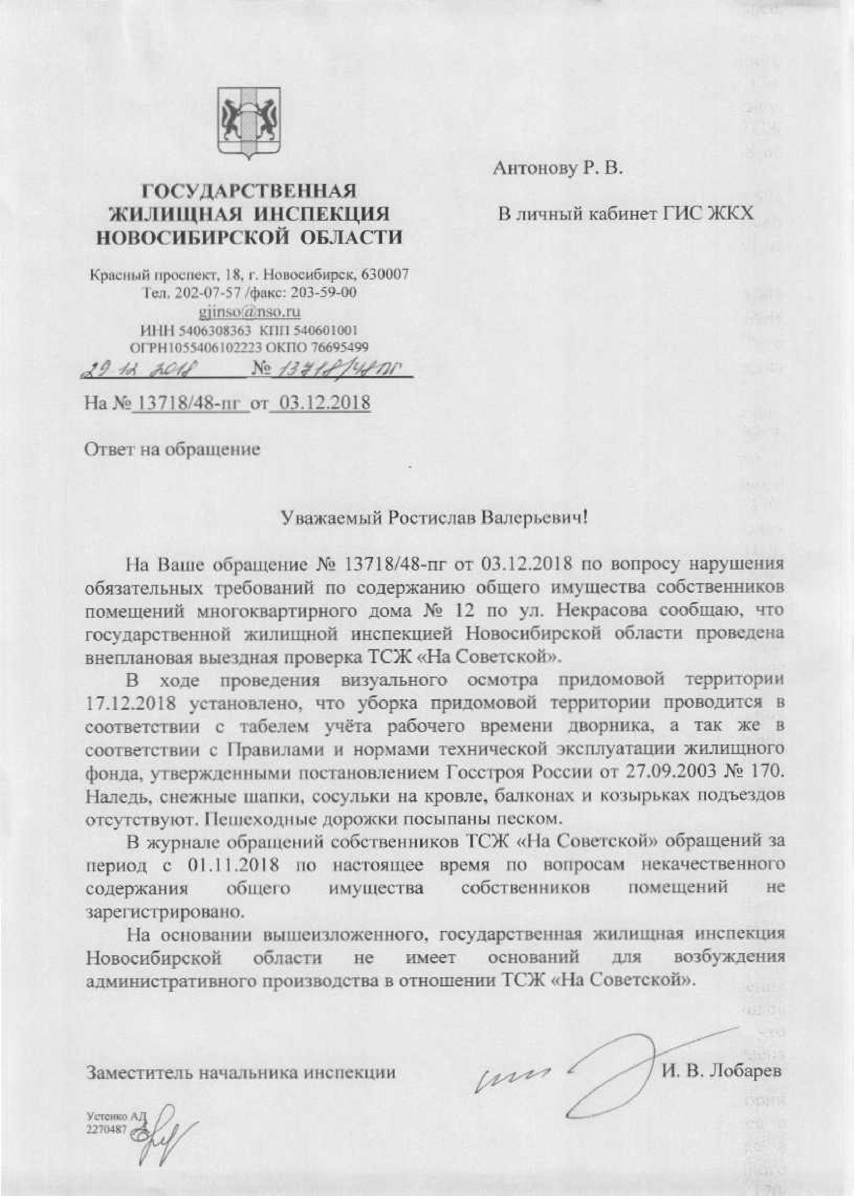 Номер жалобы:46291 Тип жалобы:Иные проблемы ЖКХ Название объекта: Регион:Новосибирская область Город:Новосибирск Адрес:Новосибирск, улица Лермонтова, 12 Описание жалобы:46296/Снег на козырьке подъезда Статус: