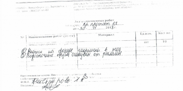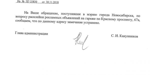 Номер жалобы:46289 Тип жалобы:Иные проблемы ЖКХ Название объекта: Регион:Новосибирская область Город:Новосибирск Адрес:Новосибирск, Красный проспект, 67А Описание жалобы:Объявления на фасаде гаража рядом с домом Статус: