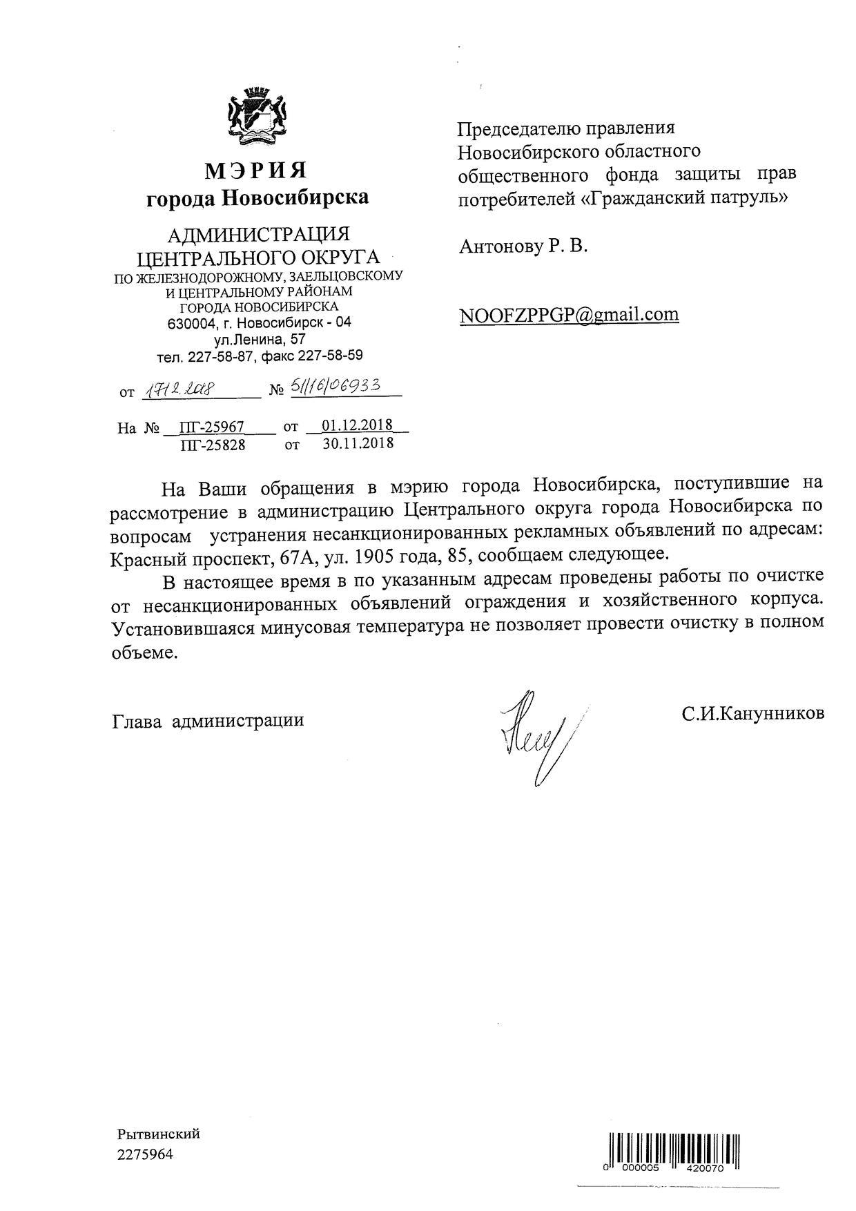 Номер жалобы:46282 Тип жалобы:Иные проблемы ЖКХ Название объекта: Регион:Новосибирская область Город:Новосибирск Адрес:Новосибирск, Красный проспект, 67А Описание жалобы:Объявление на заборе рядом с домом Статус:
