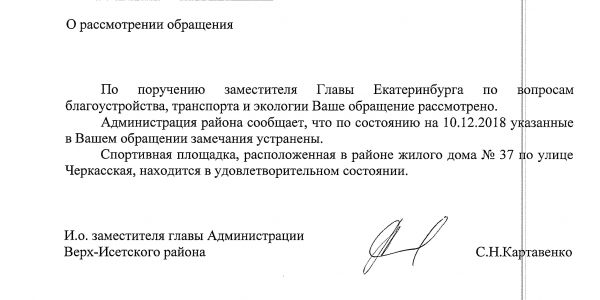Номер жалобы:46246 Тип жалобы:Иные проблемы ЖКХ Название объекта:Ооо Ук Дом Сервис Адрес:(56.81795622678407, 60.55151592940093) Описание жалобы:Должны были до 15 ноября отремонтировать футбольный корт по гарантии, но недоделали Статус: