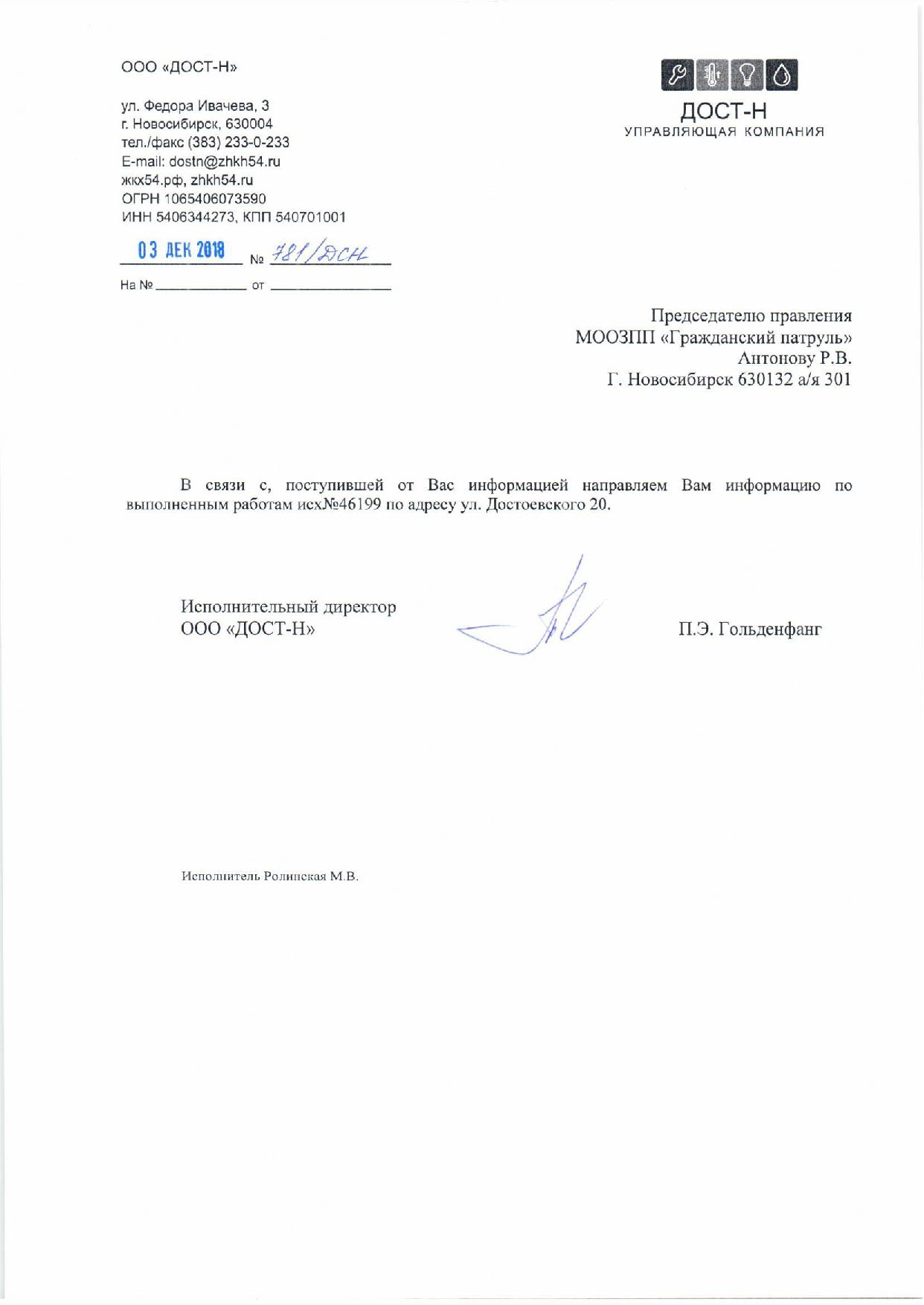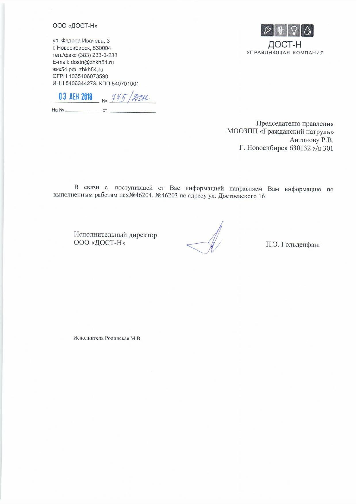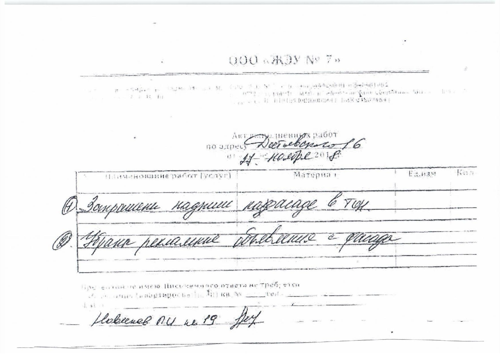 Номер жалобы:46201 Тип жалобы:Иные проблемы ЖКХ Название объекта: Регион:Новосибирская область Город:Новосибирск Адрес:Новосибирск, улица Достоевского, 18 Описание жалобы:Объявления на фасаде дома Статус: