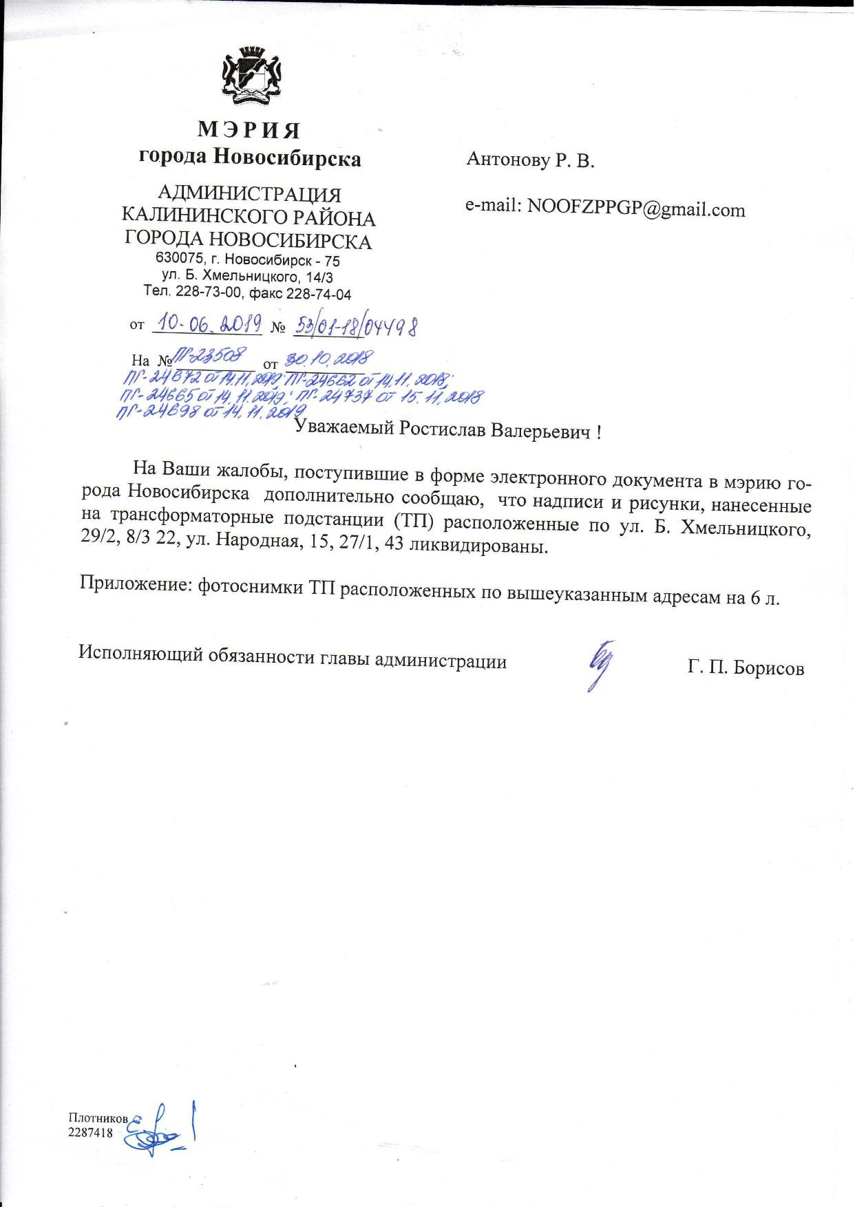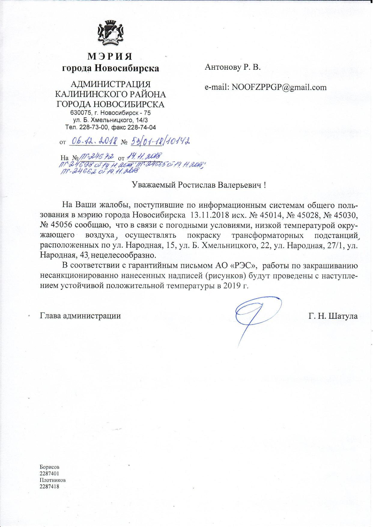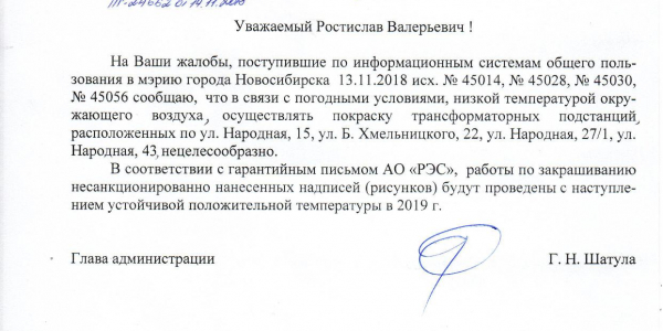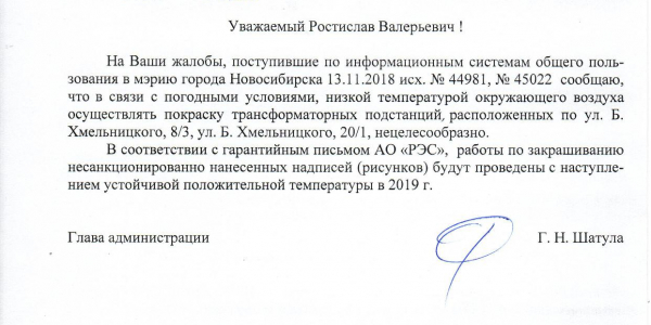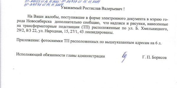 Номер жалобы:45022 Тип жалобы:Иные проблемы ЖКХ Название объекта:Управляющая Компания Регион:Новосибирская область Город:Новосибирск Адрес:ул Богдана Хмельницкого, 20/1 Описание жалобы:Надписи на хозяйственном корпусе Статус: