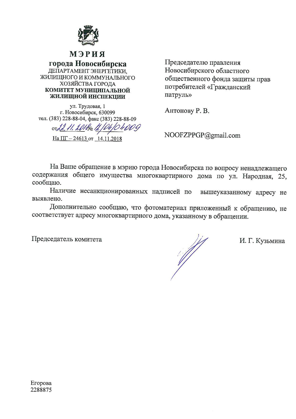 Номер жалобы:45014 Тип жалобы:Иные проблемы ЖКХ Название объекта:Управляющая Компания Регион:Новосибирская область Город:Новосибирск Адрес:ул Народная, 15 Описание жалобы:Надписи на хозяйственном корпусе Статус: