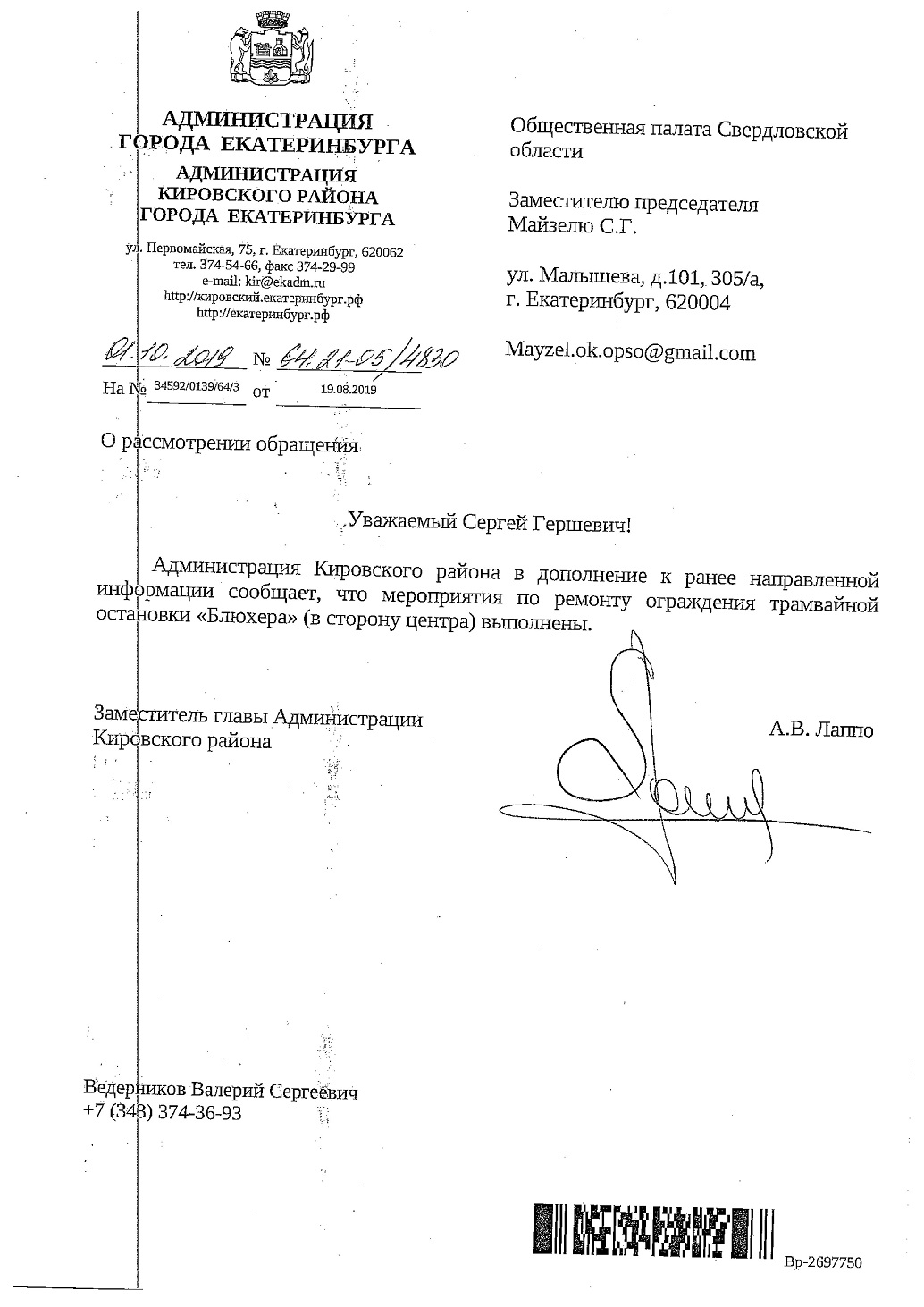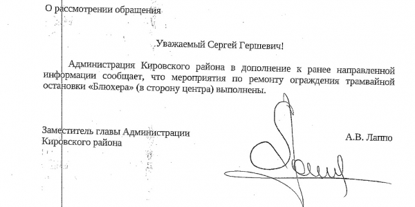 Номер жалобы:58663 Тип жалобы:Ненадлежащее содержание малых архитектурных форм Название объекта:мэрия Регион:Свердловская область Город:Екатеринбург Адрес:улица Блюхера, 10 Описание жалобы:Необходим ремонт ограждения трамвайной остановки «Блюхера» со стороны остановки «Шарташ». Статус: