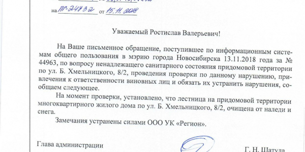 Номер жалобы:44957 Тип жалобы:Иные проблемы ЖКХ Название объекта:Управляющая Компания Адрес:(55.04742564722218, 82.91838448494674) Описание жалобы:Богдана Хмельницкого 6, объявления в неположенном месте Статус: