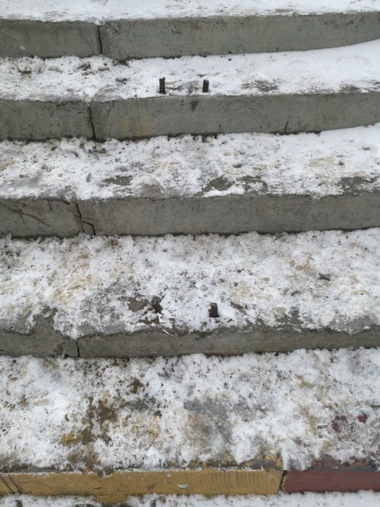 Номер жалобы:44531 Тип жалобы:Иные проблемы ЖКХ Название объекта:Неизвестно Адрес:(55.033196590339784, 83.02168808877468) Описание жалобы:При спуске по лестнице от спортивной площадки к дому 39 по ул.Высоцкого из ступеней торчит несколько арматур!!Это кто же до такого додумался?А дворники почему об этой опасной ситуации не докладывают мастерам?Ждёте когда кто-нибудь «приземлится» на неё головой?! Статус: