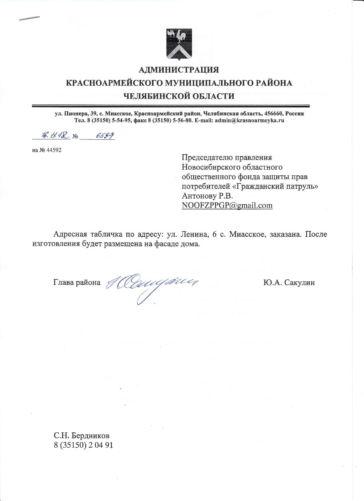 Номер жалобы:44592 Тип жалобы:Иные проблемы ЖКХ Название объекта:Администрация Красноармейского Муниципального Района Челябинской Области Регион:Челябинская область Город:с. Миасское Адрес:ул. Ленина, 6 Описание жалобы:Прошу изготовить новый знак обозначения дома (улица и номер дома), с меньшим количеством рекламы обслуживающих компаний и УК и прикрепить на многоквартирные дома. Не везде они имеются.