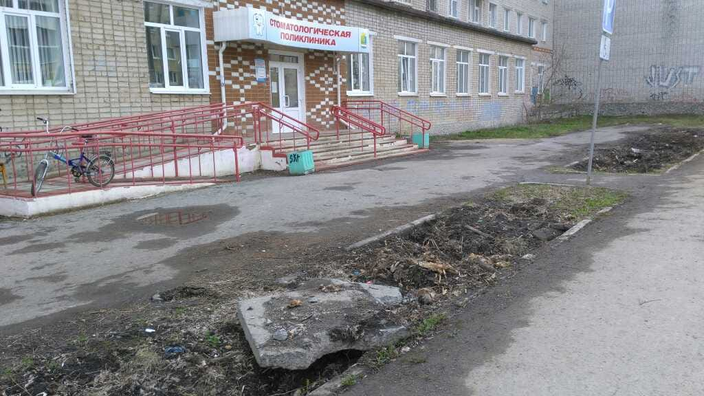 Номер жалобы:3996 Тип жалобы:Ненадлежащее содержание малых архитектурных форм Название объекта:Богданович Регион:Свердловская Город:Богданович Адрес:Октябрьская ул., 7 Описание жалобы:Нарушение благоустройства перед зданием стоматологической поликлиники Статус:
