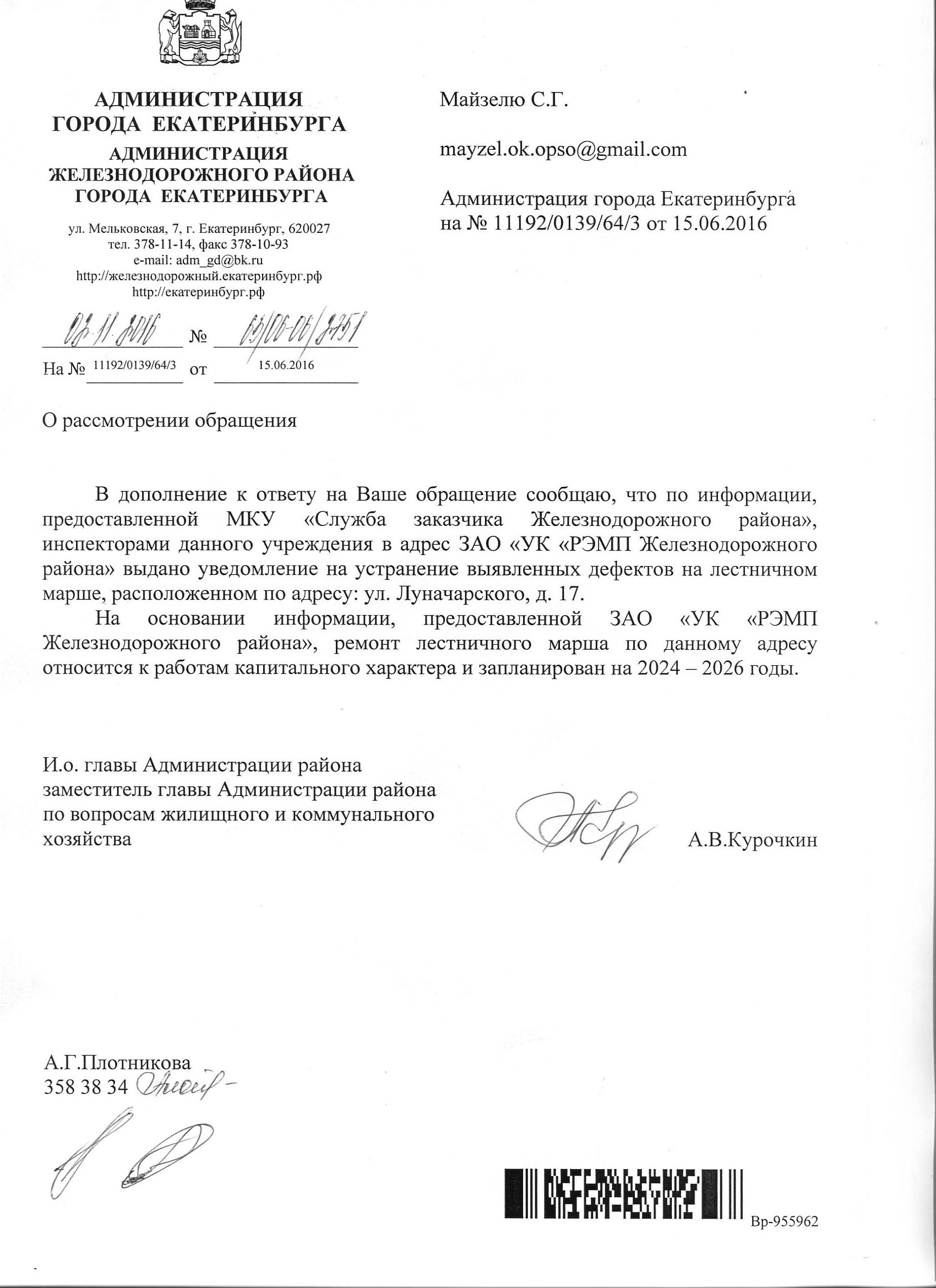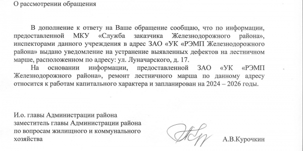 Номер жалобы:4066 Тип жалобы:Ненадлежащее содержание малых архитектурных форм Название объекта:Администрация Орджоникидзевского Района Регион:Свердловская область Город:Екатеринбург Адрес:Шефская ул., 122 Описание жалобы:Вдоль западного въезда на стоянку перед зданием разрушен бордюр. Статус: