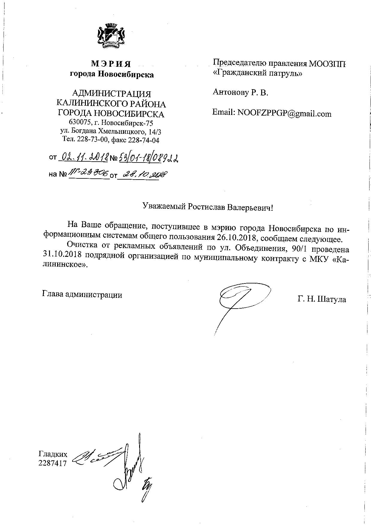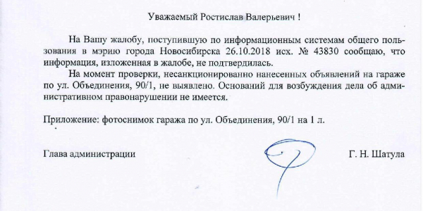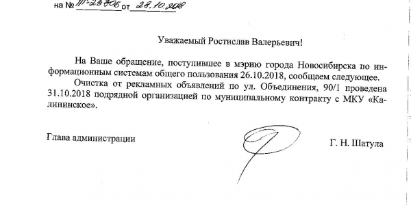 Номер жалобы:43827 Тип жалобы:Иные проблемы ЖКХ Название объекта:Управляющая Компания Регион:Новосибирская область Город:Новосибирск Адрес:ул. Объединения, 90 Описание жалобы:надписи и объявления на заборе, Статус: