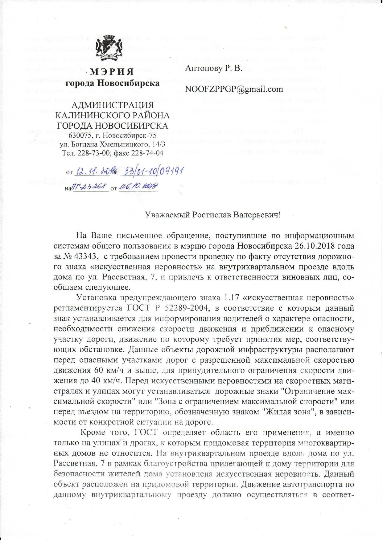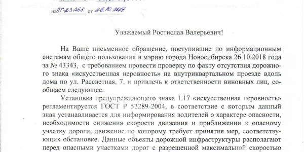 Номер жалобы:43374 Тип жалобы:Иные проблемы ЖКХ Название объекта:Управляющая Компания Город:Новосибирск Адрес:Новосибирск, 40 Театральная улица Описание жалобы:Лежачий полицейский без знака Статус: