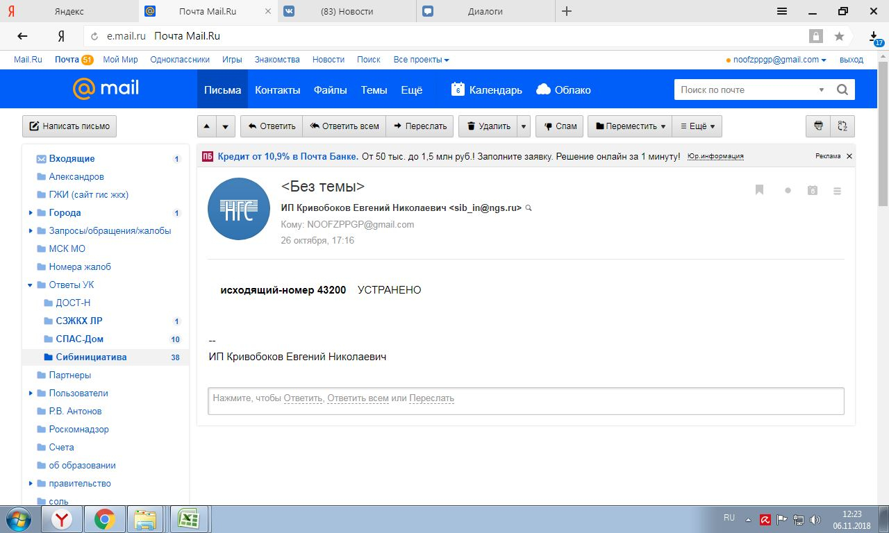 Номер жалобы:43200 Тип жалобы:Иные проблемы ЖКХ Название объекта:Управляющая Компания Город:Новосибирск Адрес:Новосибирск, 1/1 Рассветная улица Описание жалобы:Рисунки Статус: