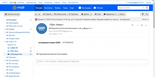 Номер жалобы:43191 Тип жалобы:Иные проблемы ЖКХ Название объекта:Управляющая Компания Город:Новосибирск Адрес:Новосибирск, 37 улица Курчатова Описание жалобы:Комментарий Статус: