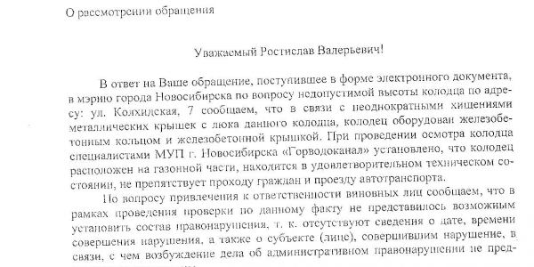 Номер жалобы:43170 Тип жалобы:Иные проблемы ЖКХ Название объекта:Управляющая Компания Город:Новосибирск Адрес:Новосибирск, 17 улица Колхидская Описание жалобы:Комментарий Статус: