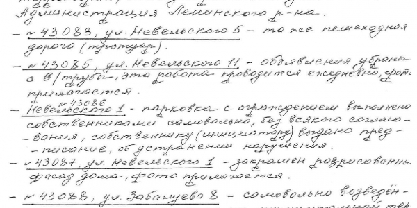 Номер жалобы:43031 Тип жалобы:Иные проблемы ЖКХ Название объекта:Администрация Регион:Иркутская область Город:Братск Адрес:ул. Муханова, 32 Описание жалобы:Надписи на фасаде закрашены не в цвет основной поверхности стены. Нарушение правил благоустройства Статус:
