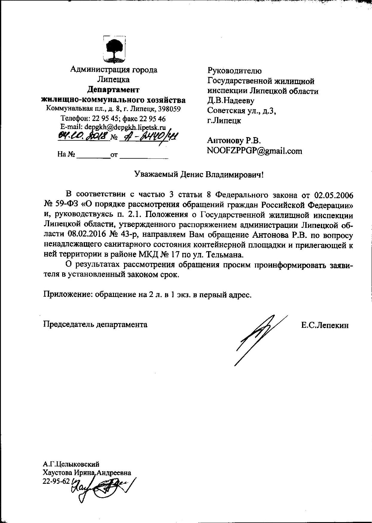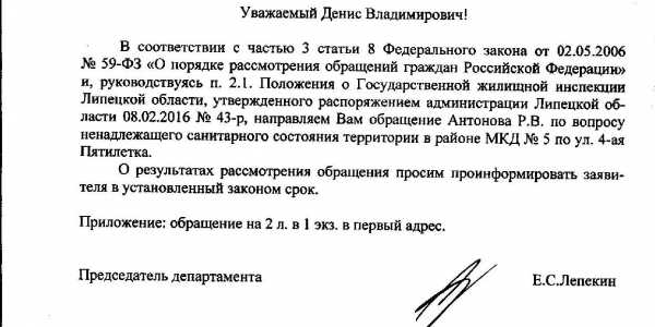 Номер жалобы:42103 Тип жалобы:Иные проблемы ЖКХ Название объекта:Мэрия Регион:Липецкая область Город:Липецк Адрес:4-ая Пятилеткa ул., 5 Описание жалобы:Мусор Статус: