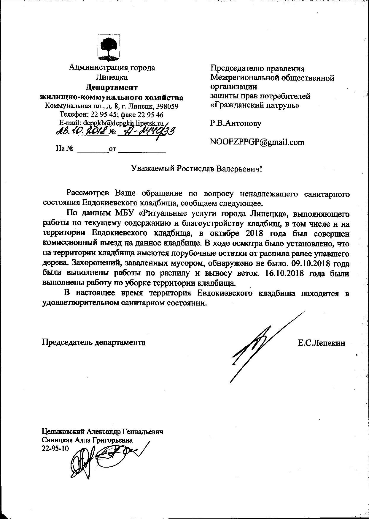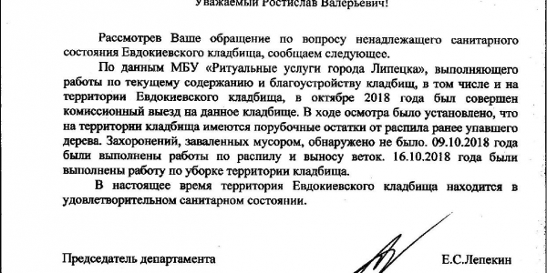 Номер жалобы:42099 Тип жалобы:Иные проблемы ЖКХ Название объекта:Кладбище Регион:Липецкая область Город:Липецк Адрес:ул. Гагарина, 68 Описание жалобы:Могилы завалены мусором. Старое городское кладбище, за по. Героев Статус: