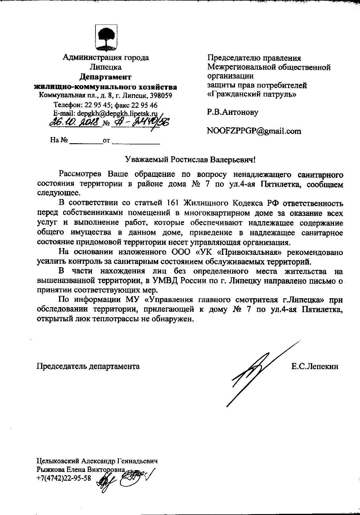 Номер жалобы:42095 Тип жалобы:Иные проблемы ЖКХ Название объекта:Мэрия Регион:Липецкая область Город:Липецк Адрес:пер. Попова, 5 Описание жалобы:Мусор. Сломанная детская площадка Статус: