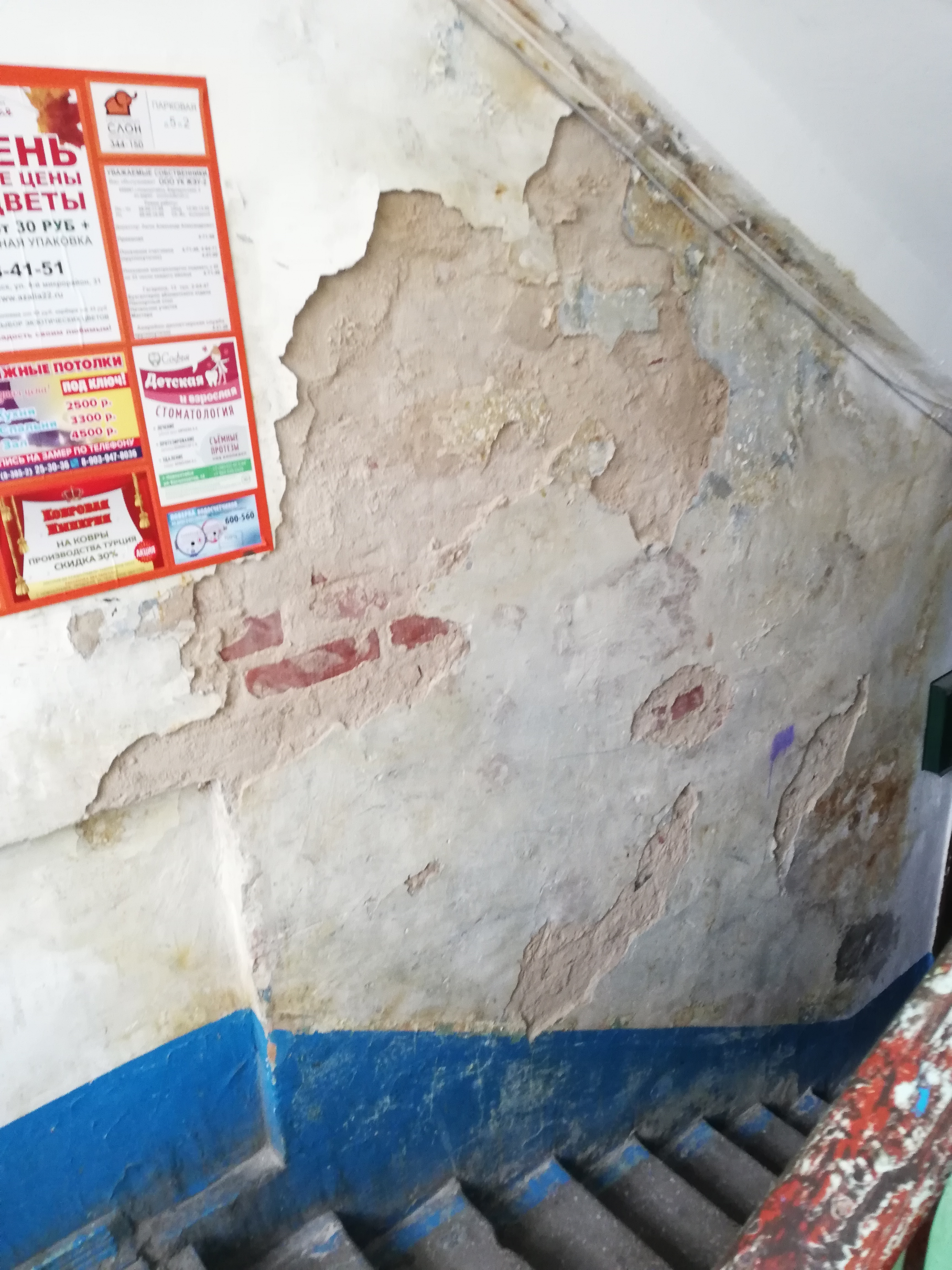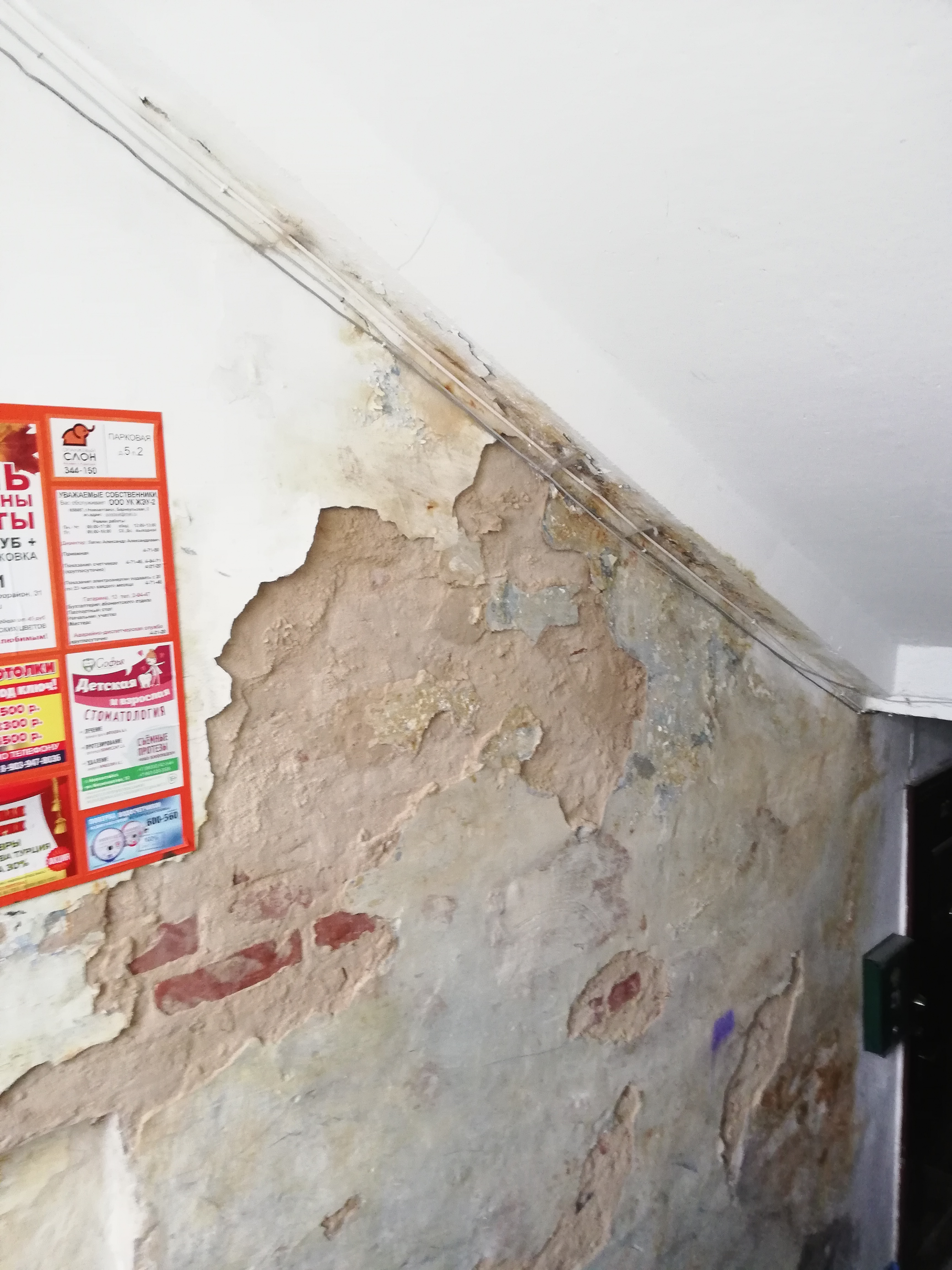 Номер жалобы:41822 Тип жалобы:Иные проблемы ЖКХ Название объекта: Регион:Алтайский край Город:Новоалтайск Адрес:Парковая 5 Описание жалобы:По адресу Парковая 5, второй подъезд, уже долгое время такая ситуация. Здесь живёт моя бабушка, ей скоро 90. Я не знаю откуда идёт эта сырость. Вся штукатурка отваливается, в некоторых местах уже до кирпича. На фото это уже уборщица убрала мусор, а так там повсюду штукатурка. Сырость пахнет жутко. Прошу принять какие-то то меры, за ремонт же они платят. Статус: