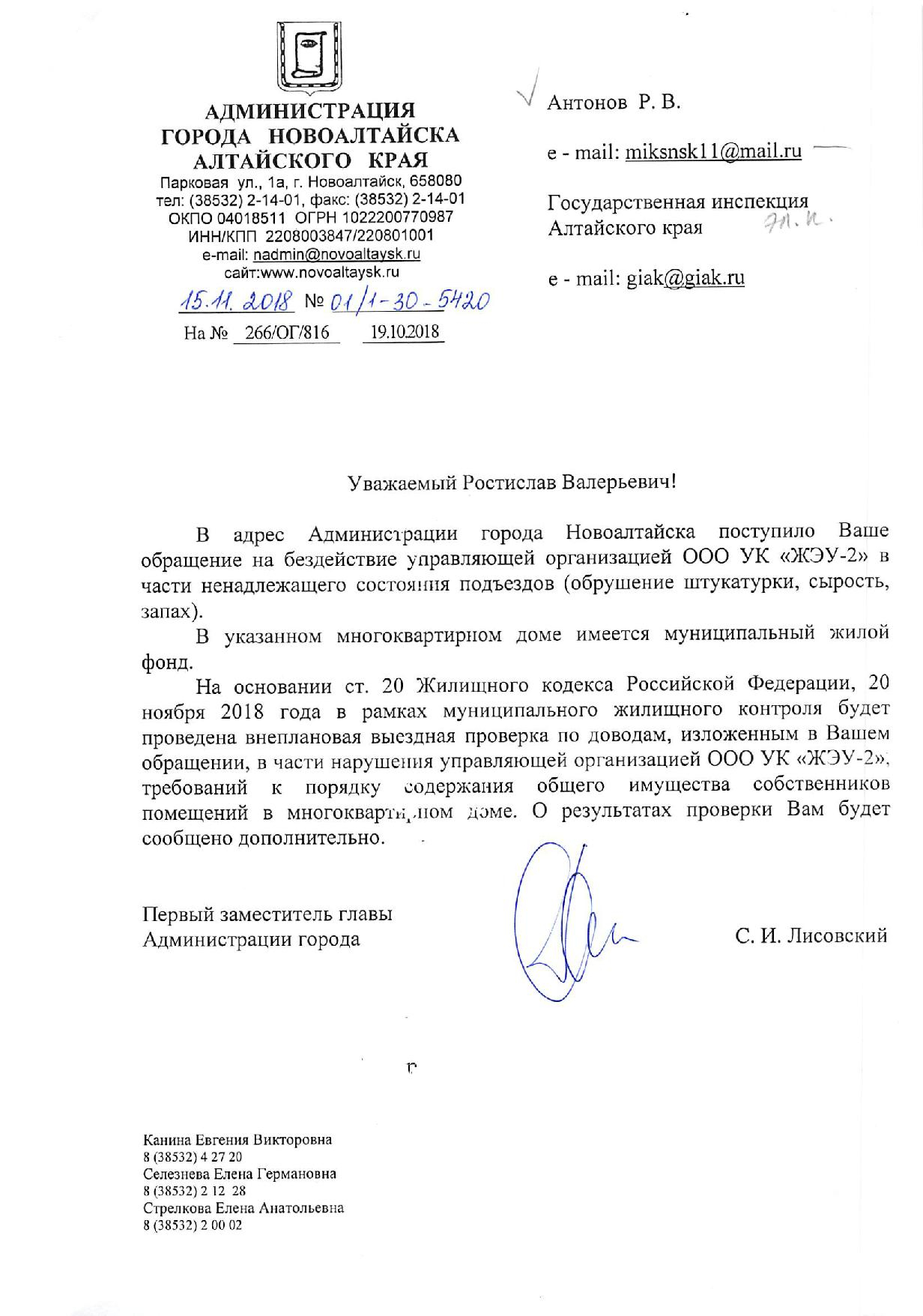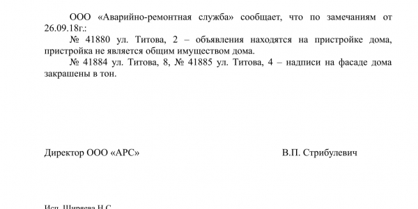 Номер жалобы:41880 Тип жалобы:Иные проблемы ЖКХ Название объекта:Управляющая Компания Регион:Новосибирская область Город:Новосибирск Адрес:ул. Титова, 2 Описание жалобы:Объявления в неположенном месте Статус:
