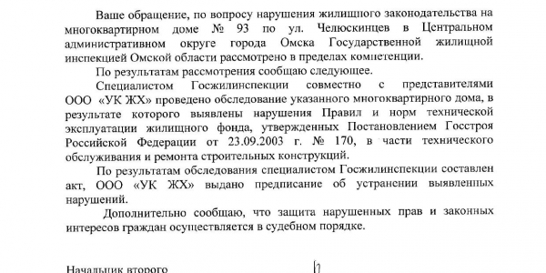 Номер жалобы:41799 Тип жалобы:Иные проблемы ЖКХ Название объекта:Жкх Регион:Омская область Город:Омск Адрес:ул. Челюскинцев, 93 Описание жалобы:Во всем доме над подъездами ветхие козырьки Статус: