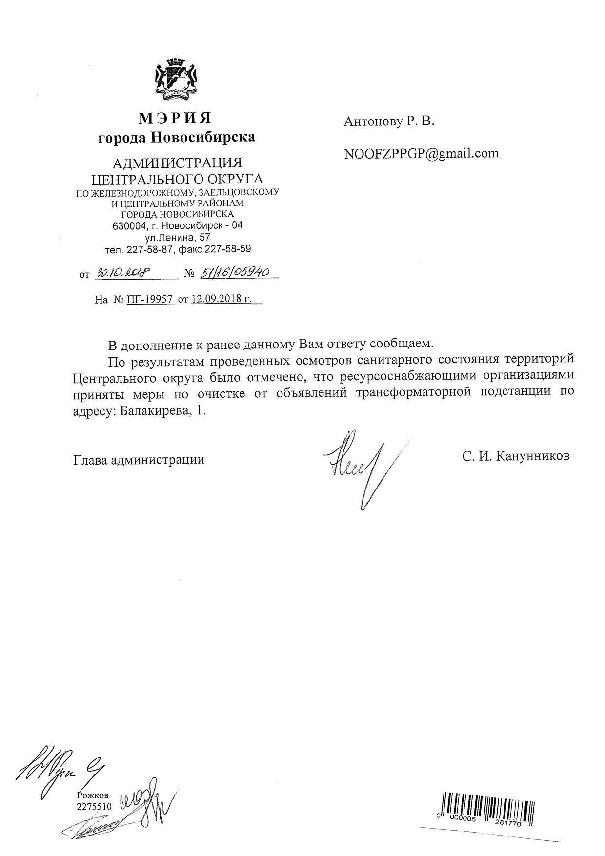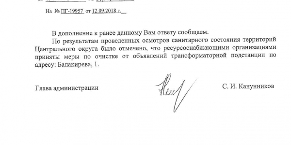 Номер жалобы:41343 Тип жалобы:Иные проблемы ЖКХ Название объекта:Управляющая Компания Регион:Новосибирская область Город:Новосибирск Адрес:ул. Балакирева, 1 Описание жалобы:Объявления на хозяйственном корпусе рядом с домом Статус:
