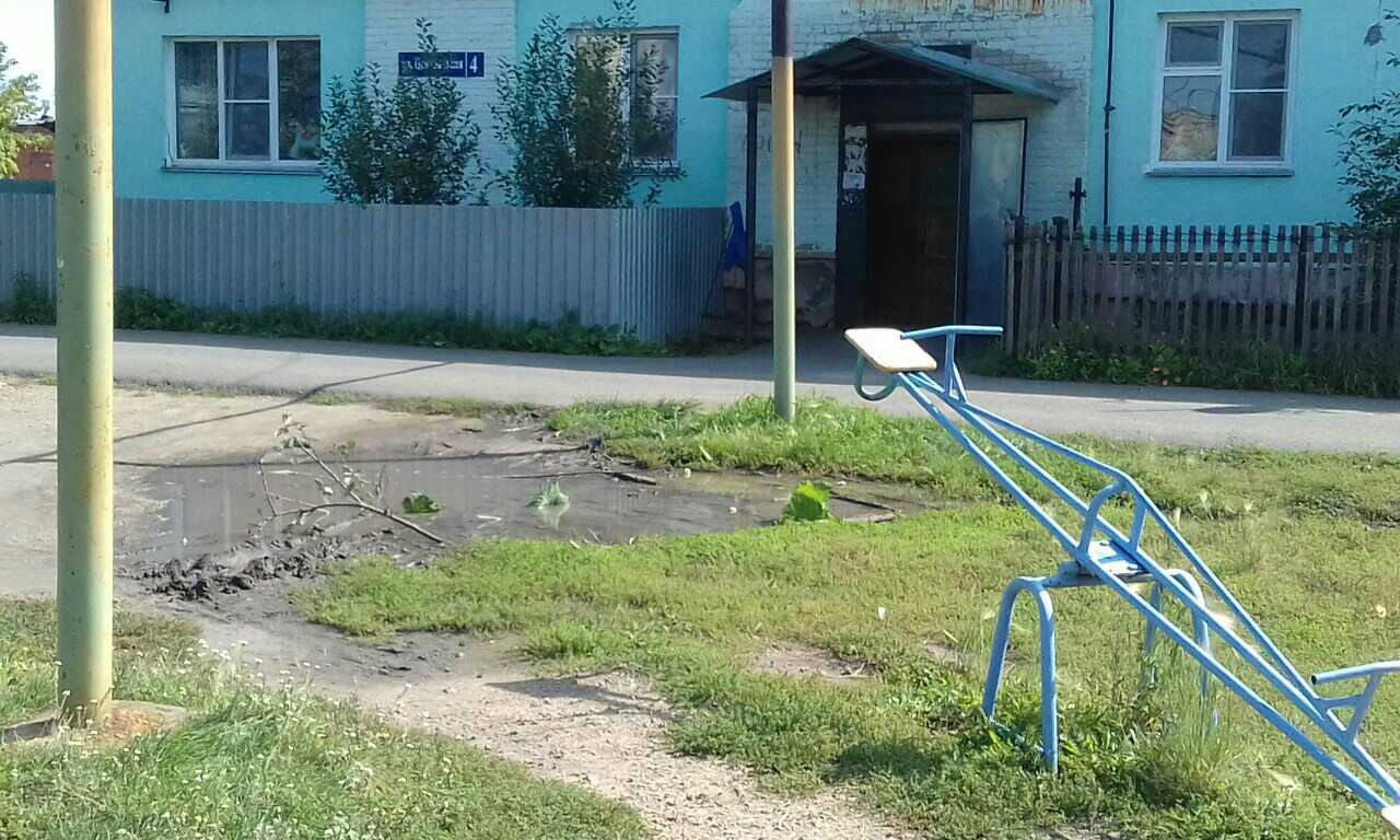Номер жалобы:41100 Тип жалобы:Иные проблемы ЖКХ Название объекта:Администрация Саккуловского Сельского Поселения Сосновского Района Челябинской Области Регион:Челябинская область Город:Саккулово Адрес:Unnamed Road, Описание жалобы:В поселке Саккулово во дворе дома на улице Центральной дом 4 требуется засыпать вечную лужу на детской площадке. Там постоянно стоит вода и грязь Статус: