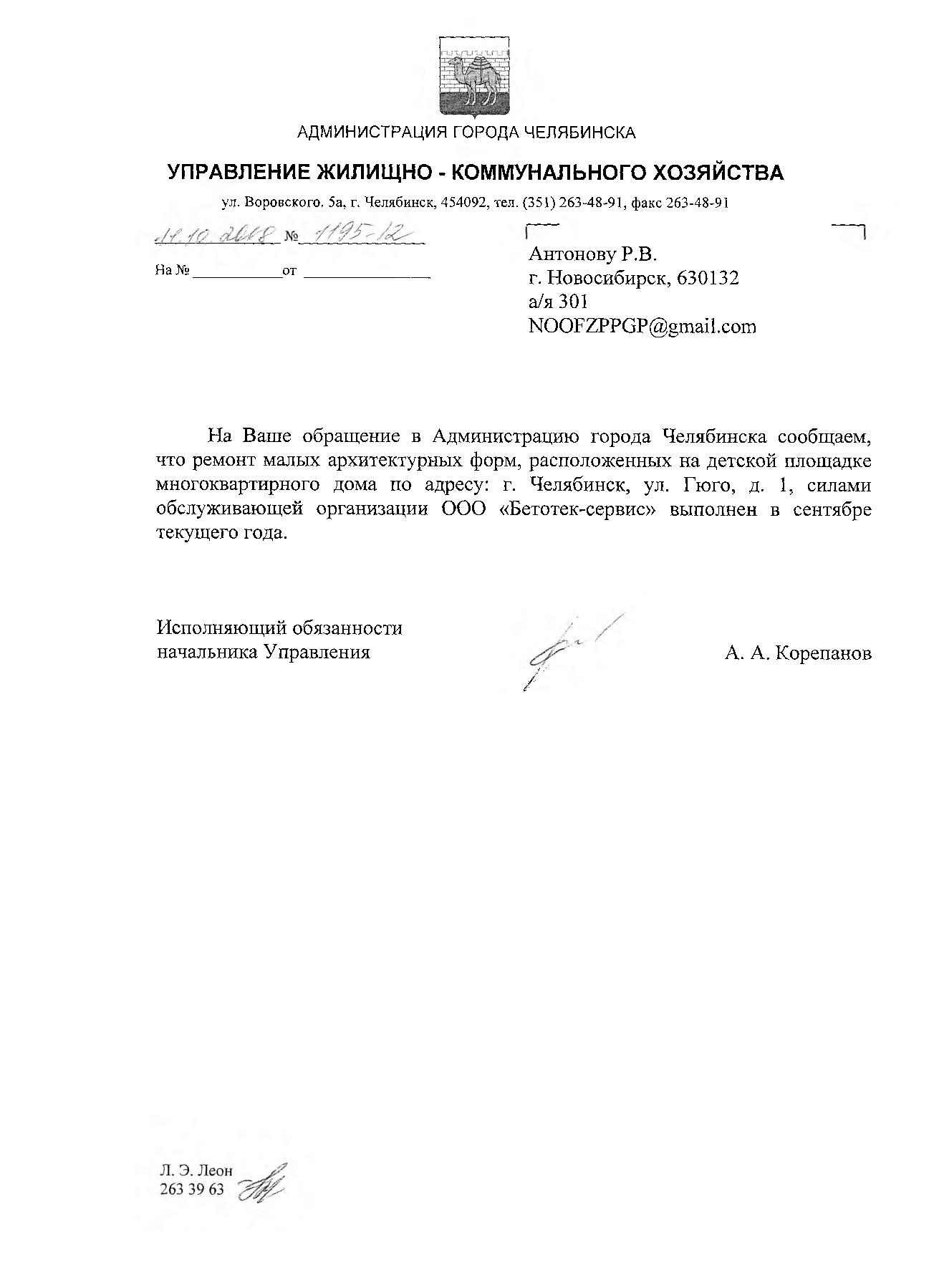 Номер жалобы:41108 Тип жалобы:Иные проблемы ЖКХ Название объекта:Администрация Ленинского Района Регион:Челябинская область Город:Челябинск Адрес:ул. Гюго, 1 Описание жалобы:933-18 Во дворе дома #1 по ул .Гюго на детской площадке вероятно сломанный снаряд, с торчащими штырями, небезопасный. Нужно или отремонтировать или демонтировать. Статус: