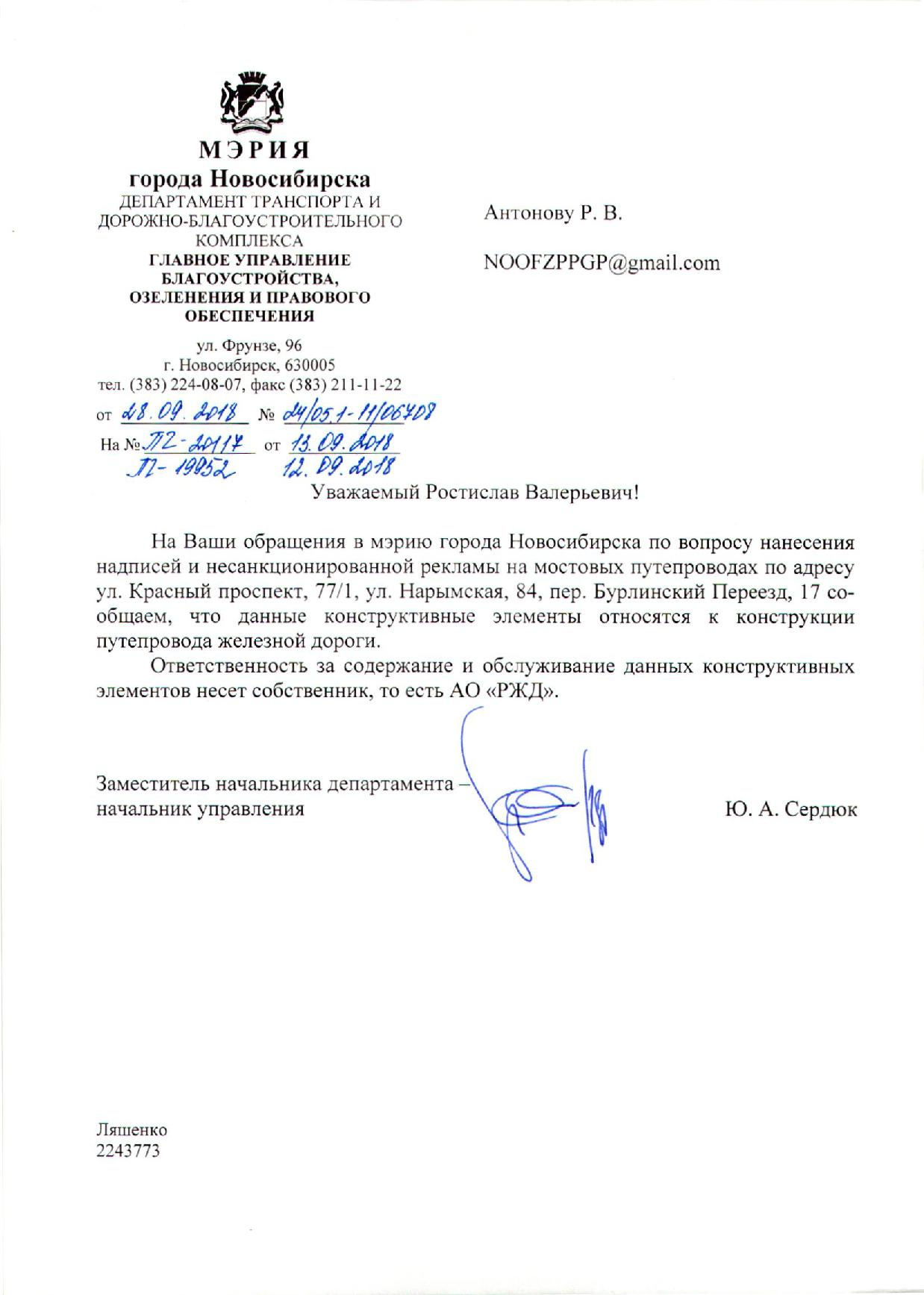 Номер жалобы:41116 Тип жалобы:Иные проблемы ЖКХ Название объекта:Администрация Регион:Новосибирская область Город:Новосибирск Адрес:Красный пр., 77/1 Описание жалобы:Под Мостом на стенах надписи Статус: