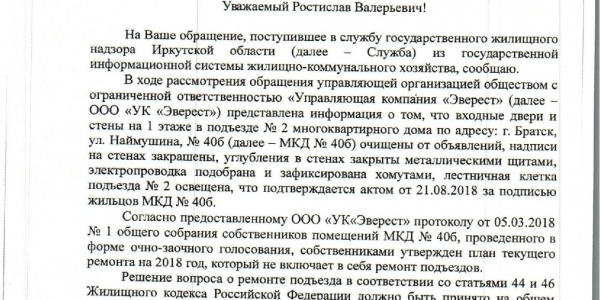 Прошу устранить данные недочеты в ближайший финансовый период (2019 год). Если данные пункты не будут устранены, возникает необходимость обратиться в прокуратуру за разъяснением расходования собираемых средств УК. Статус: