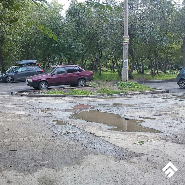 Кроме того, парковку организовали, а огромные ямы остались. На столбе еще какая-то реклама висит. Статус: